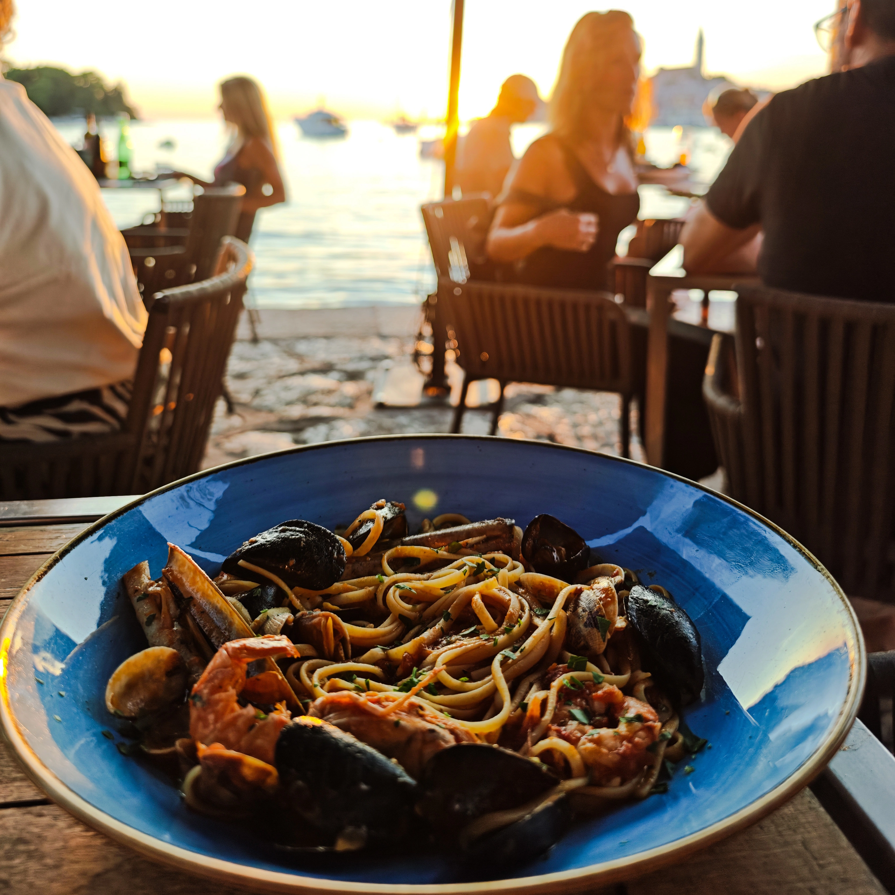 Pro tip! For the best sunset view, head to the pier by the Rovinj lighthouse or enjoy a cocktail at one of the seafront bars.